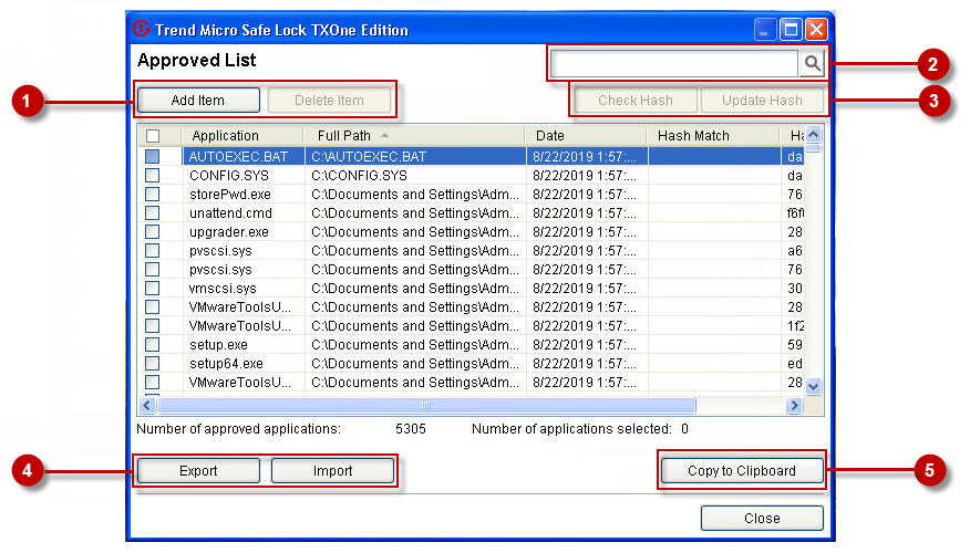 Use the Approved List to display the files that Safe Lock allows to run or make changes